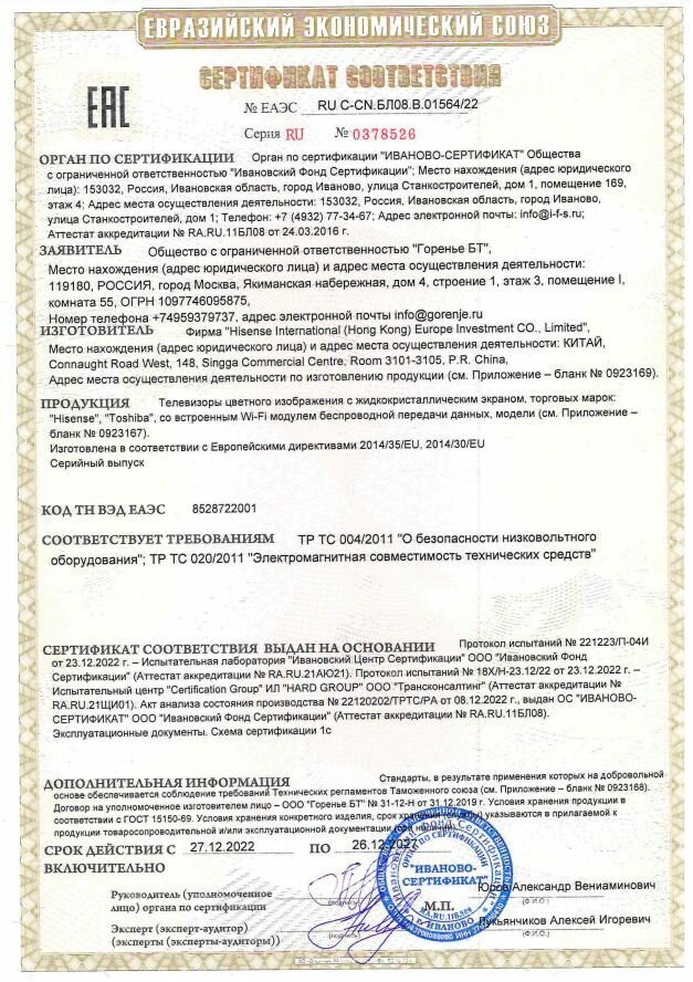 | Отзыв: | стандартный экран, по сравнению с LG, который стоял рядом казался больше из очень тонкой рамки. Кроме того был более насыщенный цвет, как на тёмных, так и на светлых участках на хисенсе, поэтому купила его. Звук DTSx качественный, хорошо разделяет речь и звуки! |