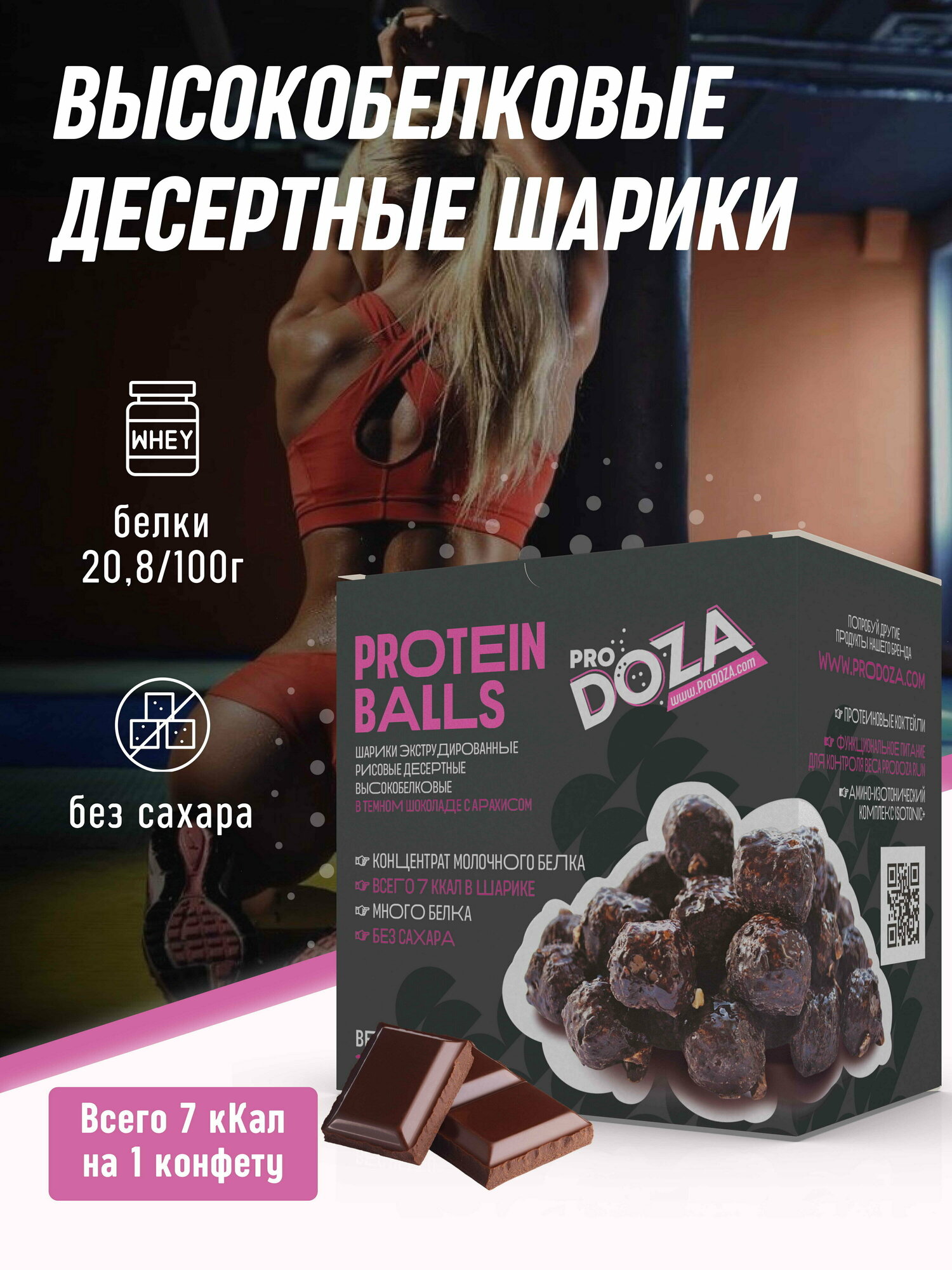 Купить Высокобелковые рисовые шарики ProDOZA в темном шоколаде, 180 г