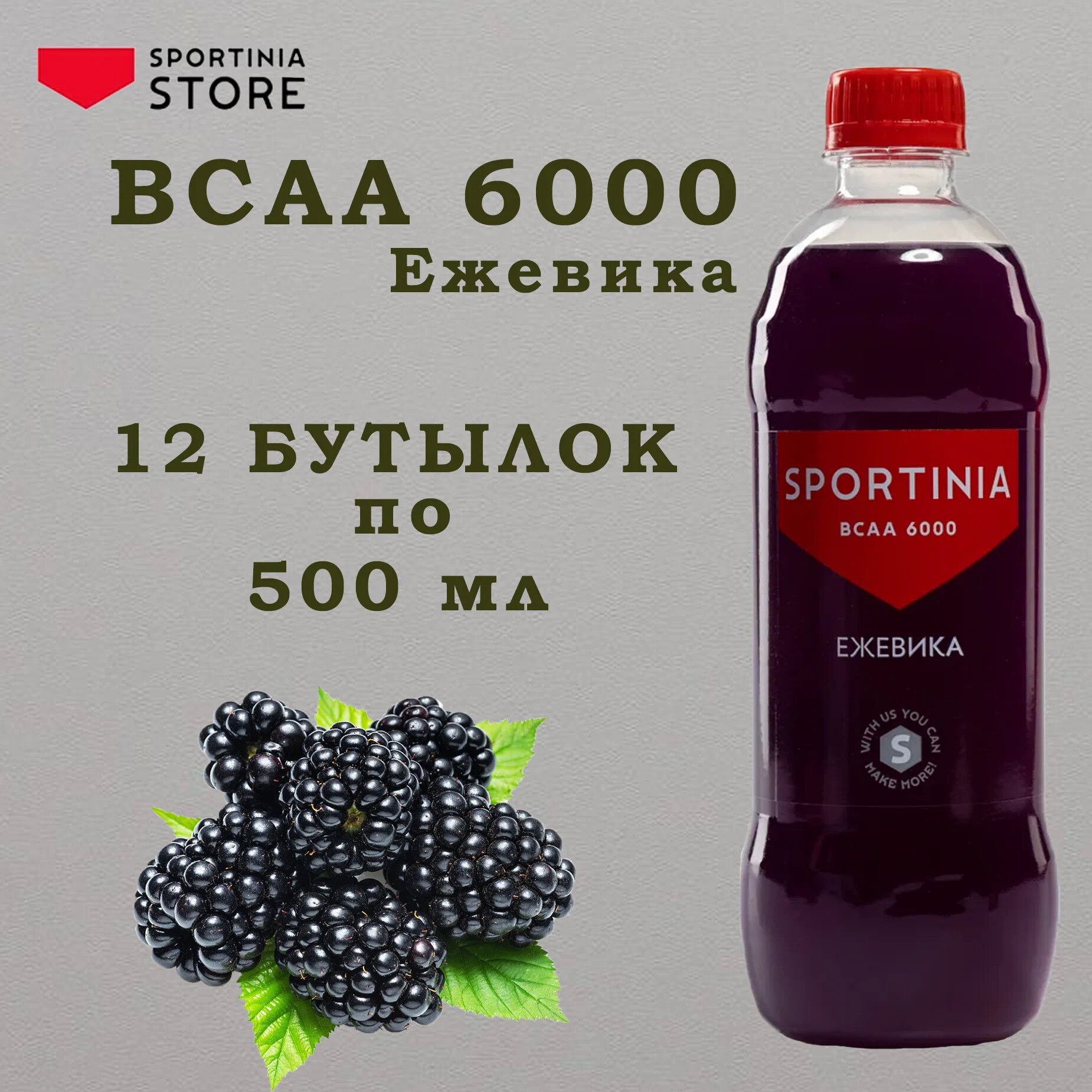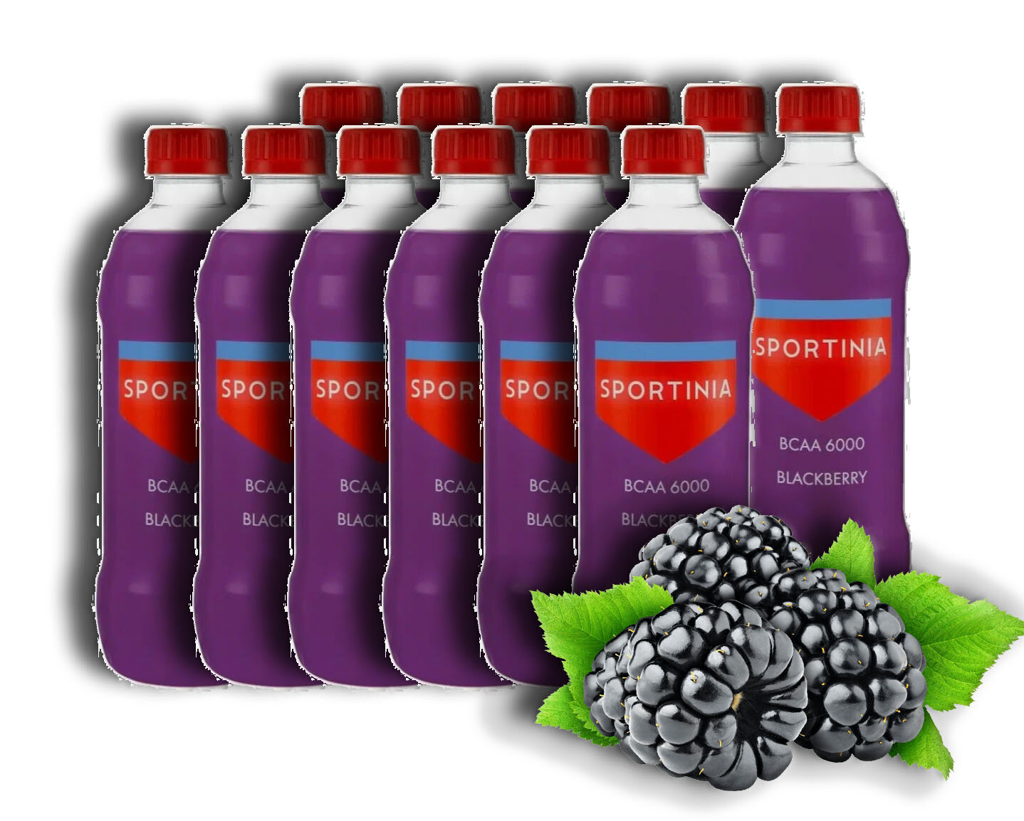 Спортивный напиток, обогащенный аминокислотами ВСАА, Sportinia BCAA 6000 со вкусом Ежевики 12 бутылок по 0,5 л.