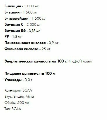 СохранитьСпортивный напиток Sportinia ВСАА (Спортиния БЦАА) 6000 Вишня-Мята 0.5 л / 12 бут. интересное: