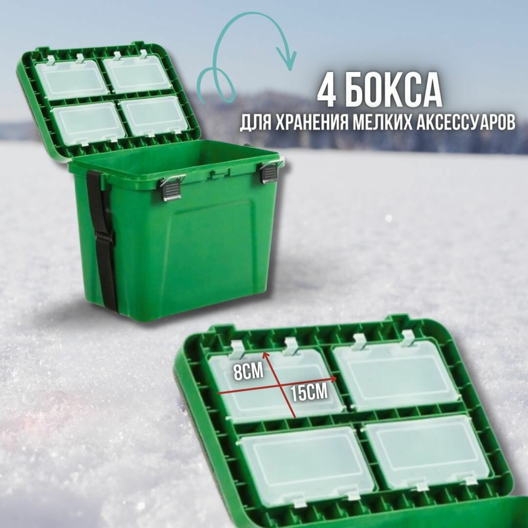 Ящик зимний, зеленый малый, 4 отделения для приманок, 310 х 360 х 240