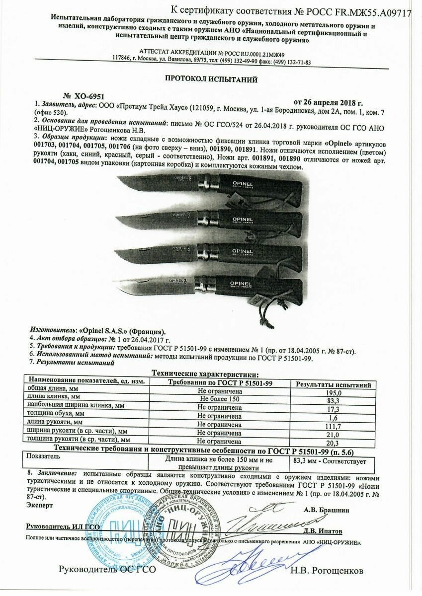 | Отзыв: | Отличный результат. Чётко работает замок фиксация. Лезвие в сложенном состоянии находится по центру паза в ручки. Деревянная удобная ручка. Для некоторых задач маловат. Оптимальный размер на мой взгляд - Opinel N10. Но ножом я доволен. |