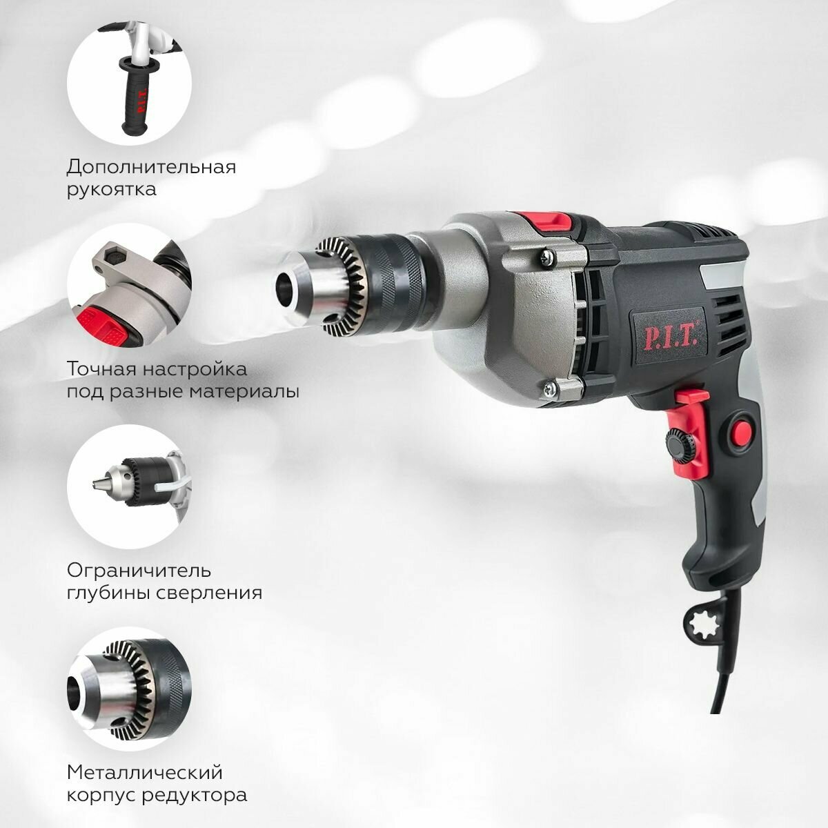 Ударная дрель P.I.T. PSB13-C8, 950 Вт черный/красный