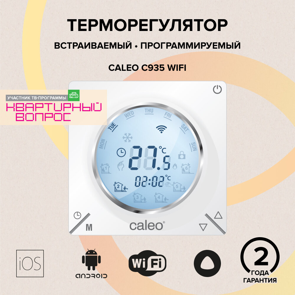 СохранитьCaleo Терморегулятор С935 Wi-Fi встраиваемый, цифровой, программируемый, 3,5 кВт УП-00000392 . интересное: