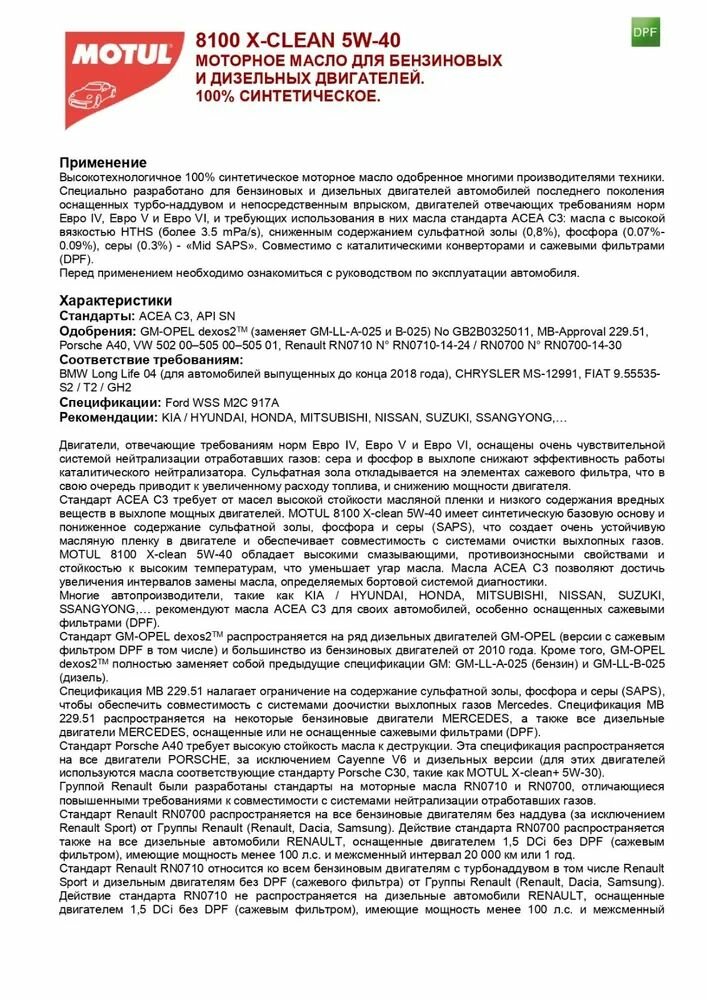 СохранитьMOTUL Масло Motul 5W40 8100 X-Clean Gen2 Api Sn/Cf Acea C3 1Л Син 112118/112467 интересное: