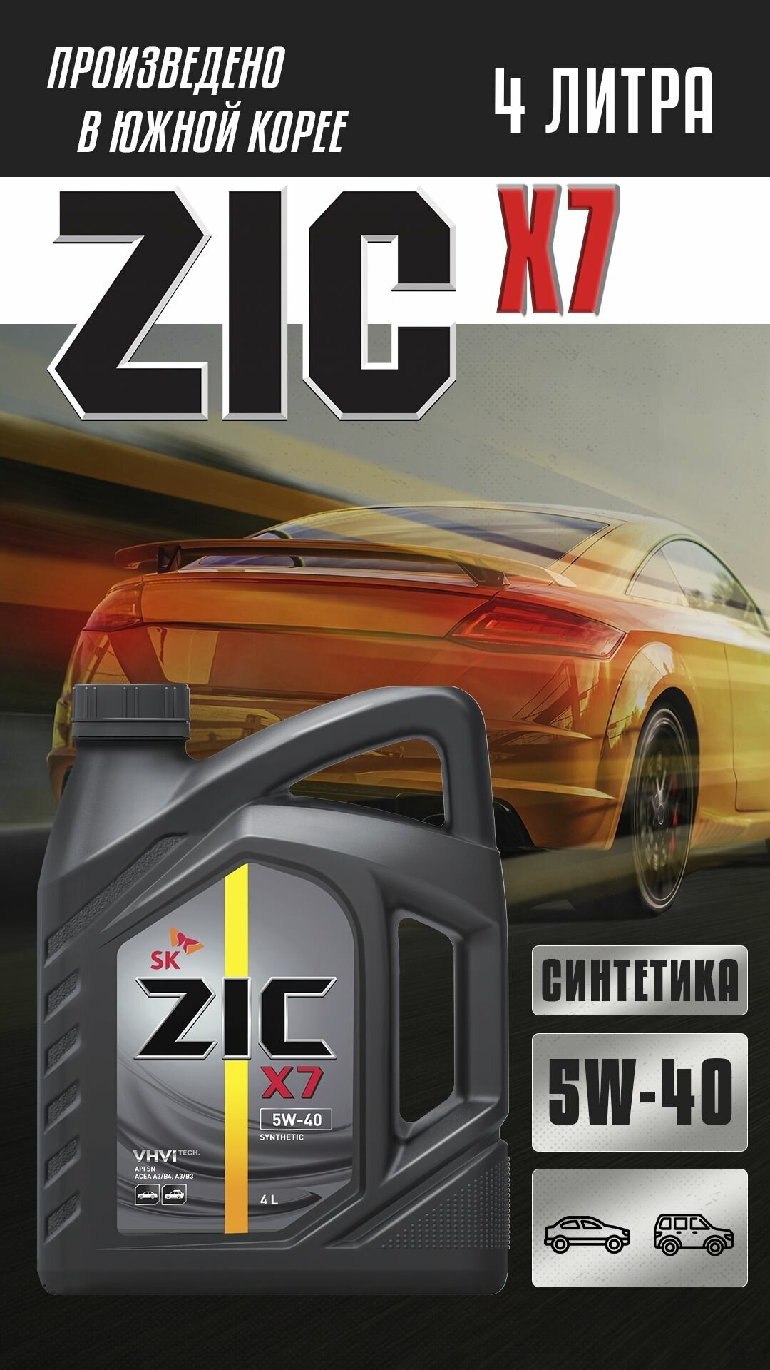 Масло моторное ZIC X7 5W-40 (4л) (162662) ZIC-5W40-X7-4L