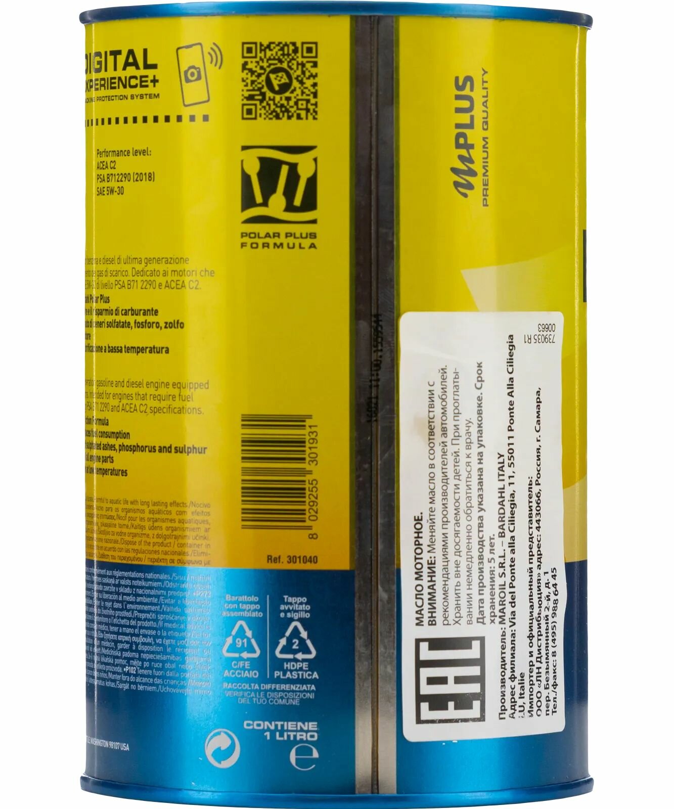 5W30 SN CF C-2 A5-B5 XTA MSAPS POLARPLUS 1L (спец. синт. моторное масло) BARDAHL 301040