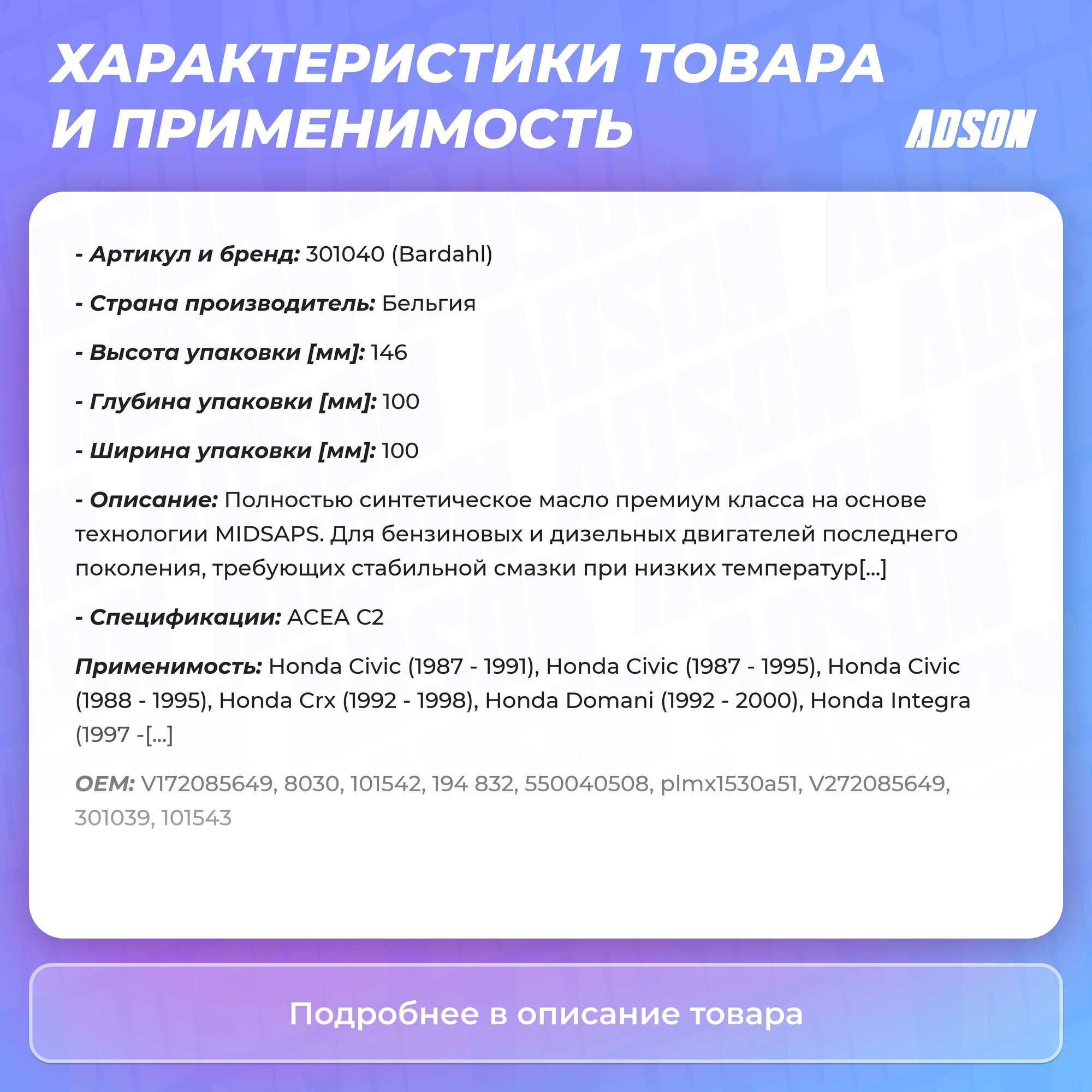 | Производитель | Bardahl |