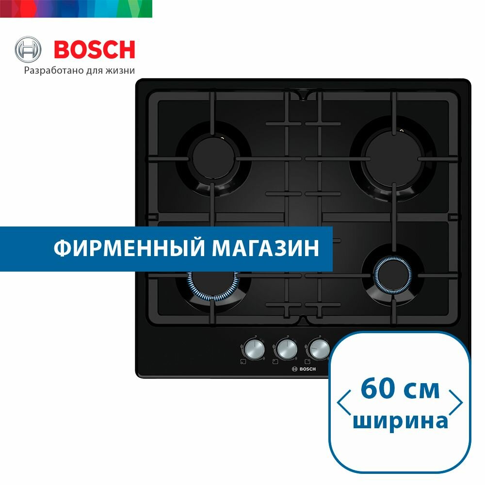 Варочная панель газовая Bosch Serie 4 PGP6B6O93R, 60 см, черный