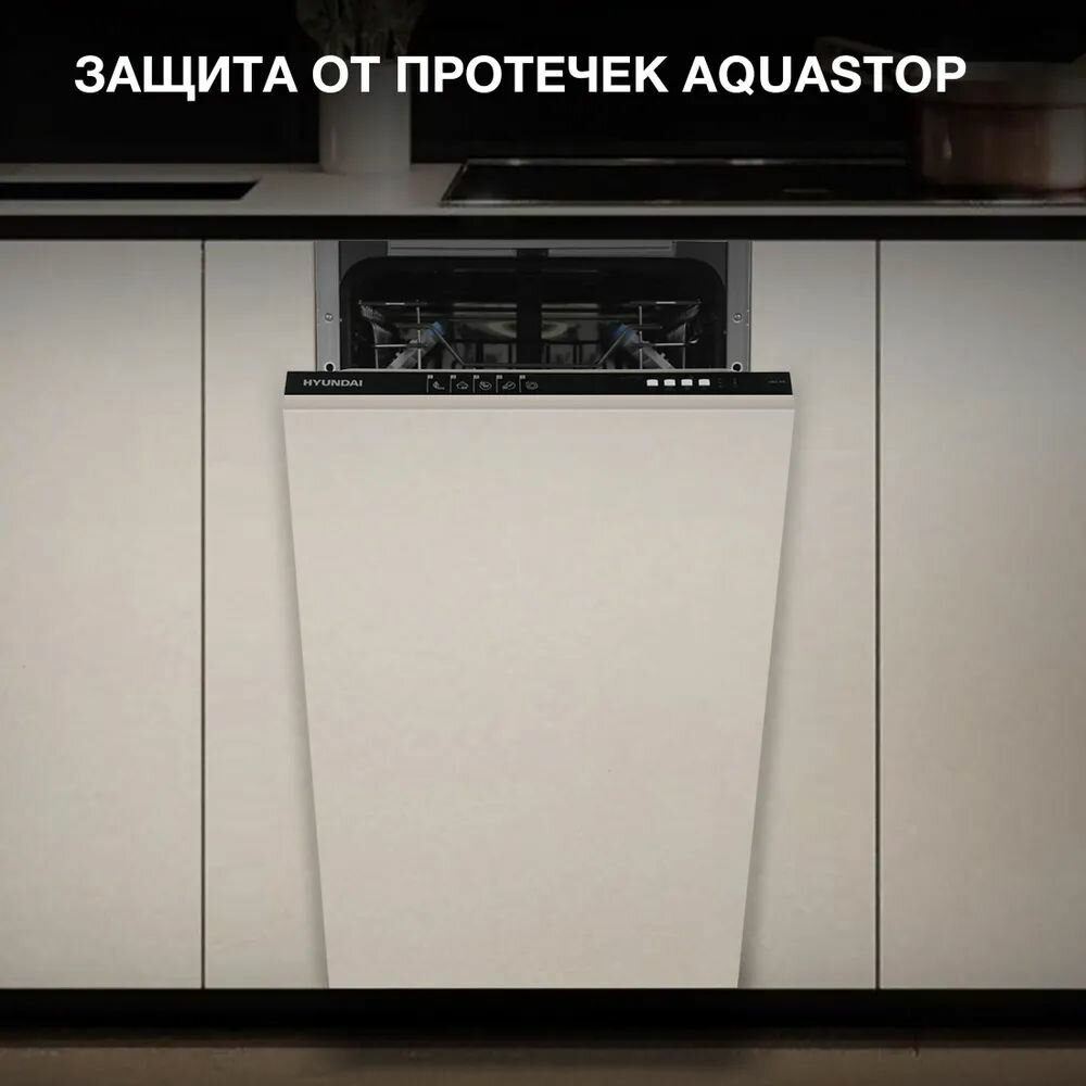 Посудомоечная машина Hyundai HBD 451, встраиваемая, 45 см, 1900 Вт, класс энергопотребления A++, 10 комплектов, 5 программ, черный