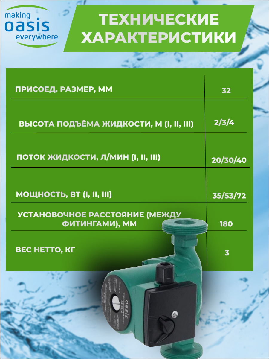 Циркуляционный насос OASIS C 25/6 "making Оasis everywhere"