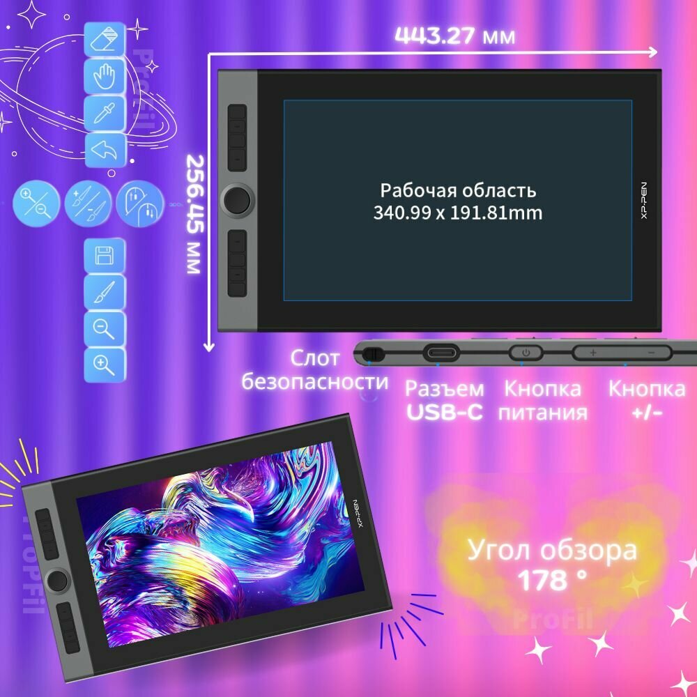 СохранитьГрафический планшет XPPen Artist Pro 16 , 1920x1080, 340*191 мм, черный интересное: