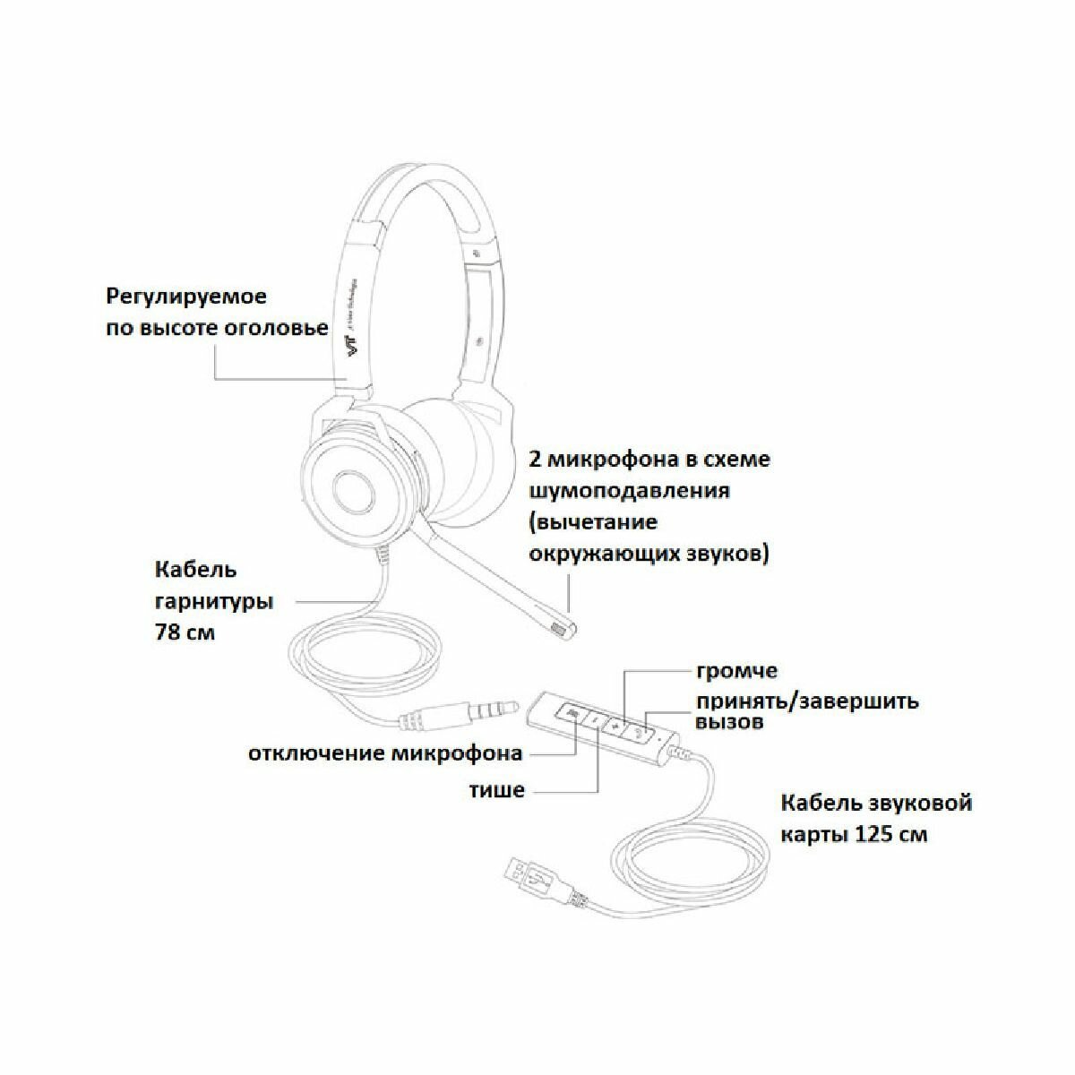 Головная гарнитура VT X208-D, Дуо, HD звук, разъемы 3,5 мм Jack и USB интересное: