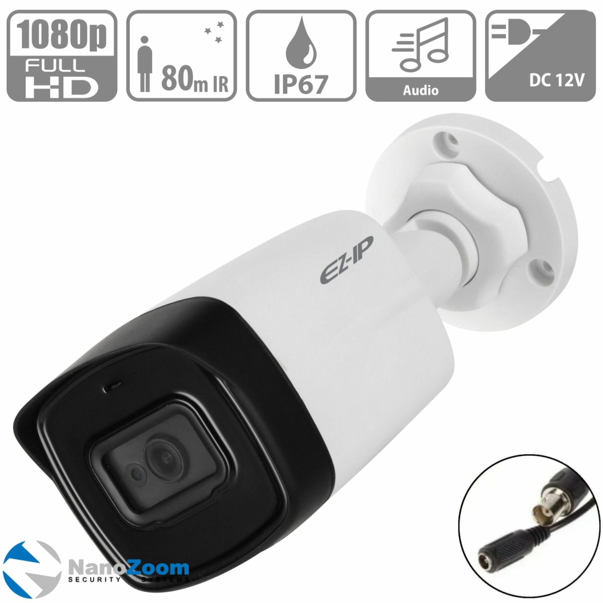 EZ-IP EZ-HAC-B5B20P-A-0280B 2Мп 2,8 мм камера видеонаблюдения HDCVI уличная, аналоговая цилиндрическая HDCVI-видеокамера для улицы с ИК подсветкой 1920x1080 Full HD, CMOS 1/2.7"