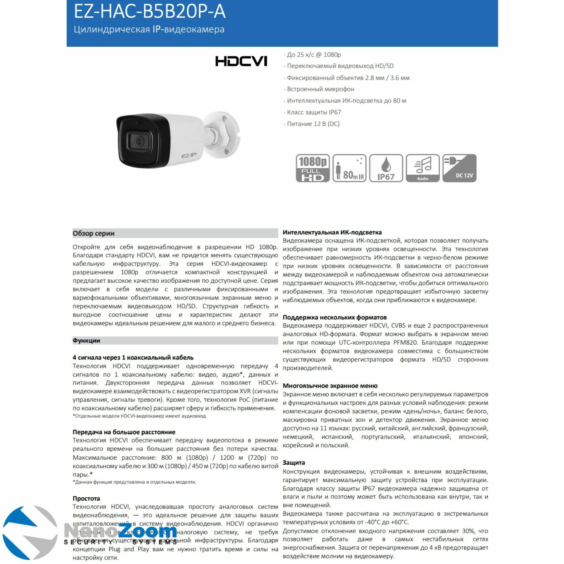 Камера EZ-IP (EZ-HAC-B5B20P-A-0280B) интересное: