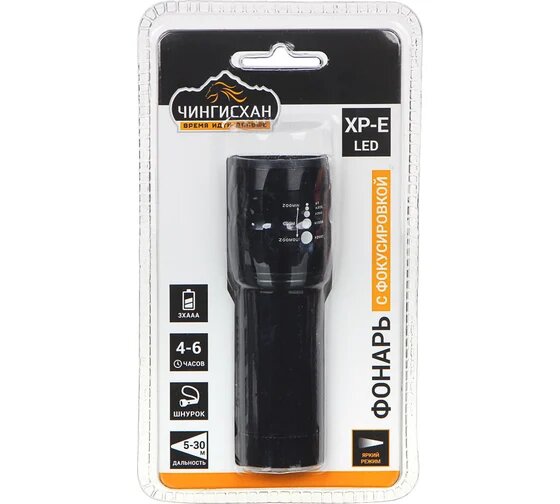 Чингисхан Фонарик, XPE, 3xAAA, 1 режим, пластик, металл 224-014