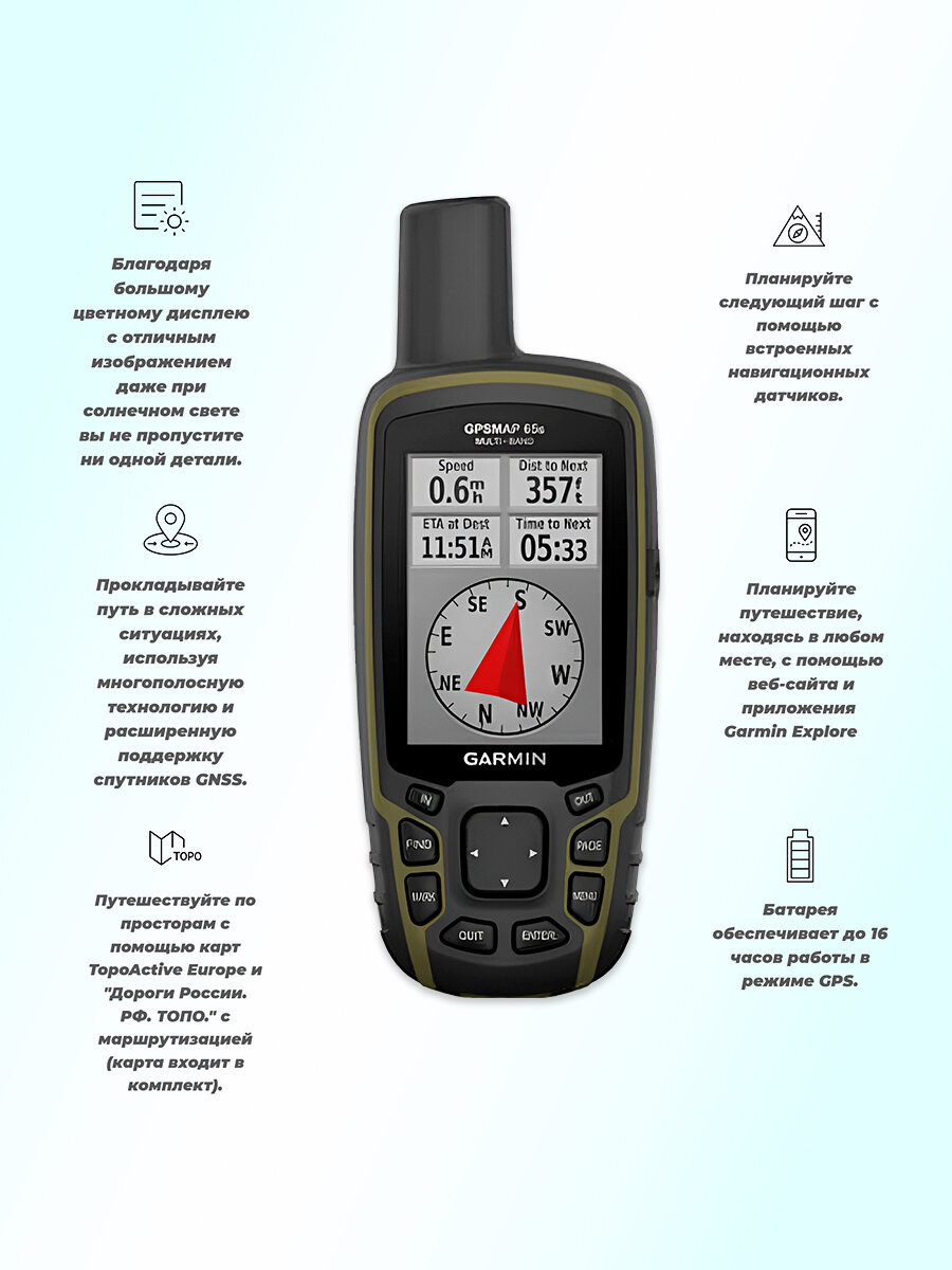 СохранитьПортативный навигатор GARMIN GPSMAP 65s с картой Топо интересное: