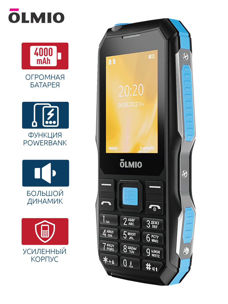 Мобильный телефон Olmio, X04 (с функцией внешнего аккумулятора), Черный с синим