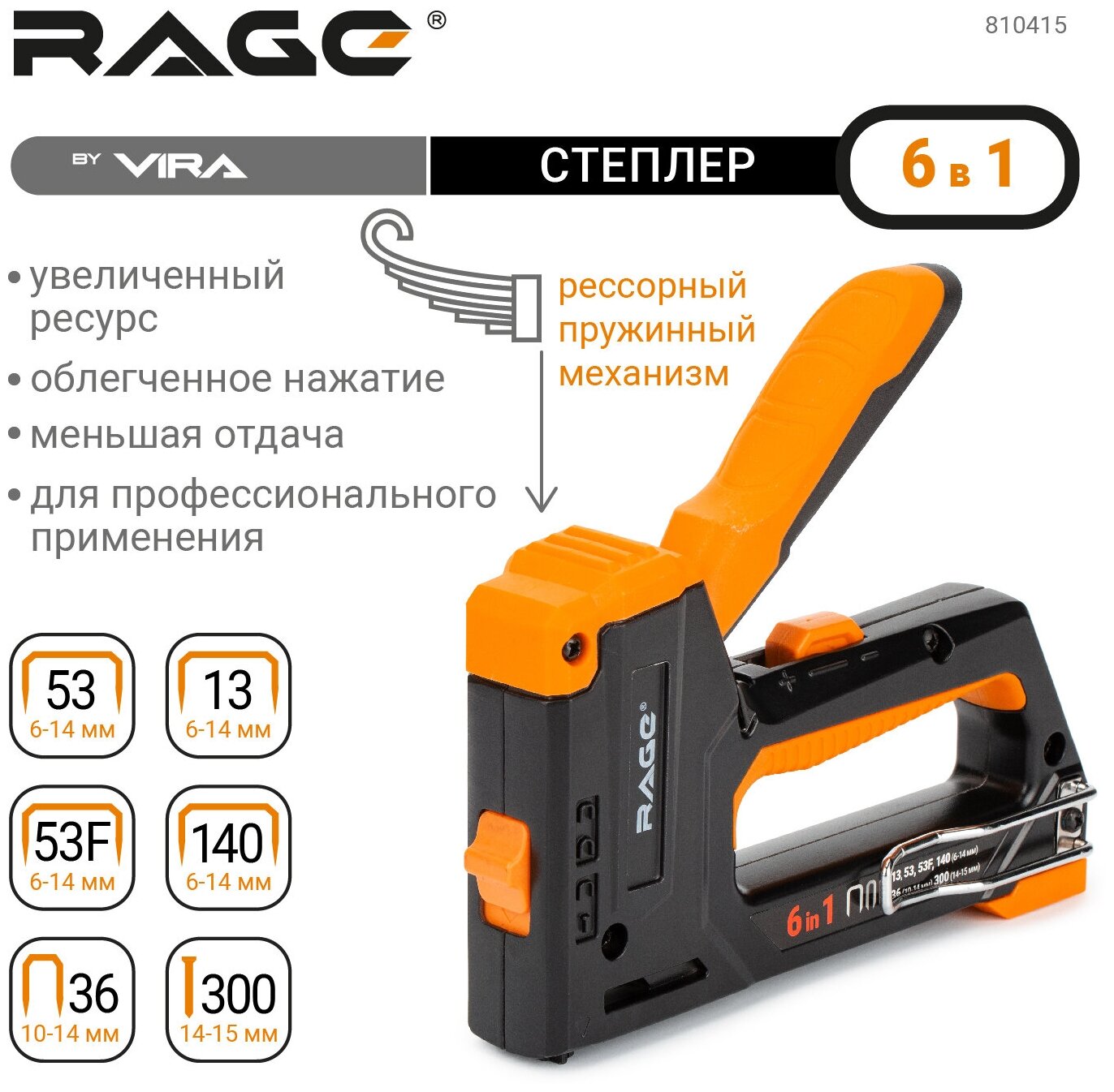 VIRA RAGE Степлер строительный 6в1 6-14 мм 810415