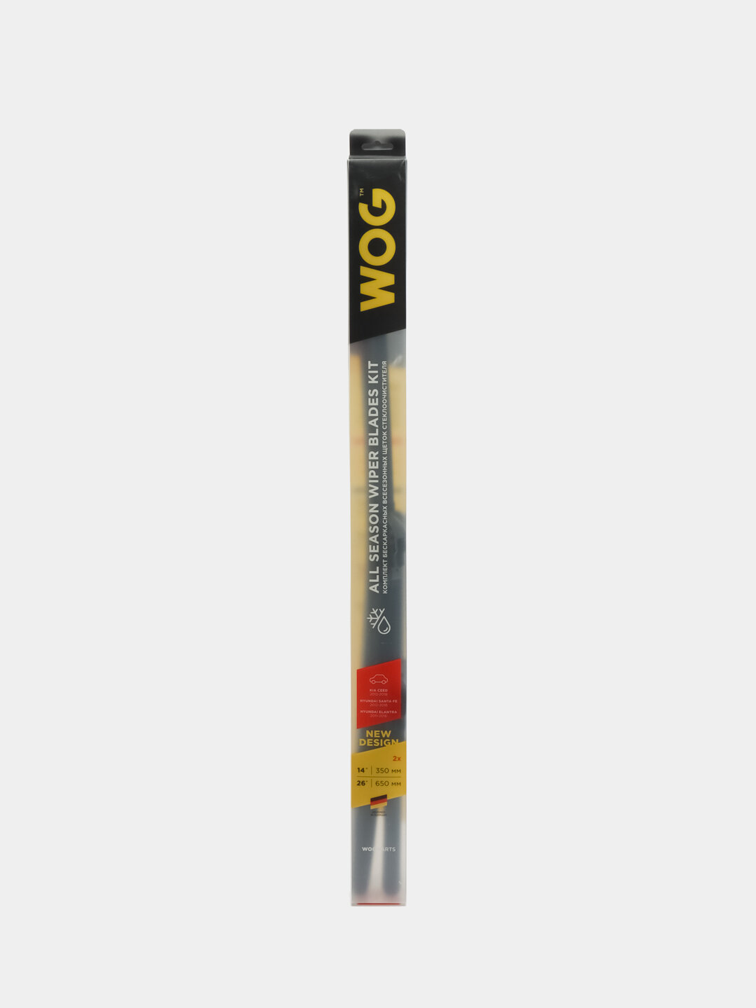 Комплект всесезонных бескаркасных бесшумных щеток стеклоочистителя 650мм/26"+400мм/16" (RIO/SPORTAGE/CRETA/CERATO) с креплением "HOOK" WOG, 2 шт.