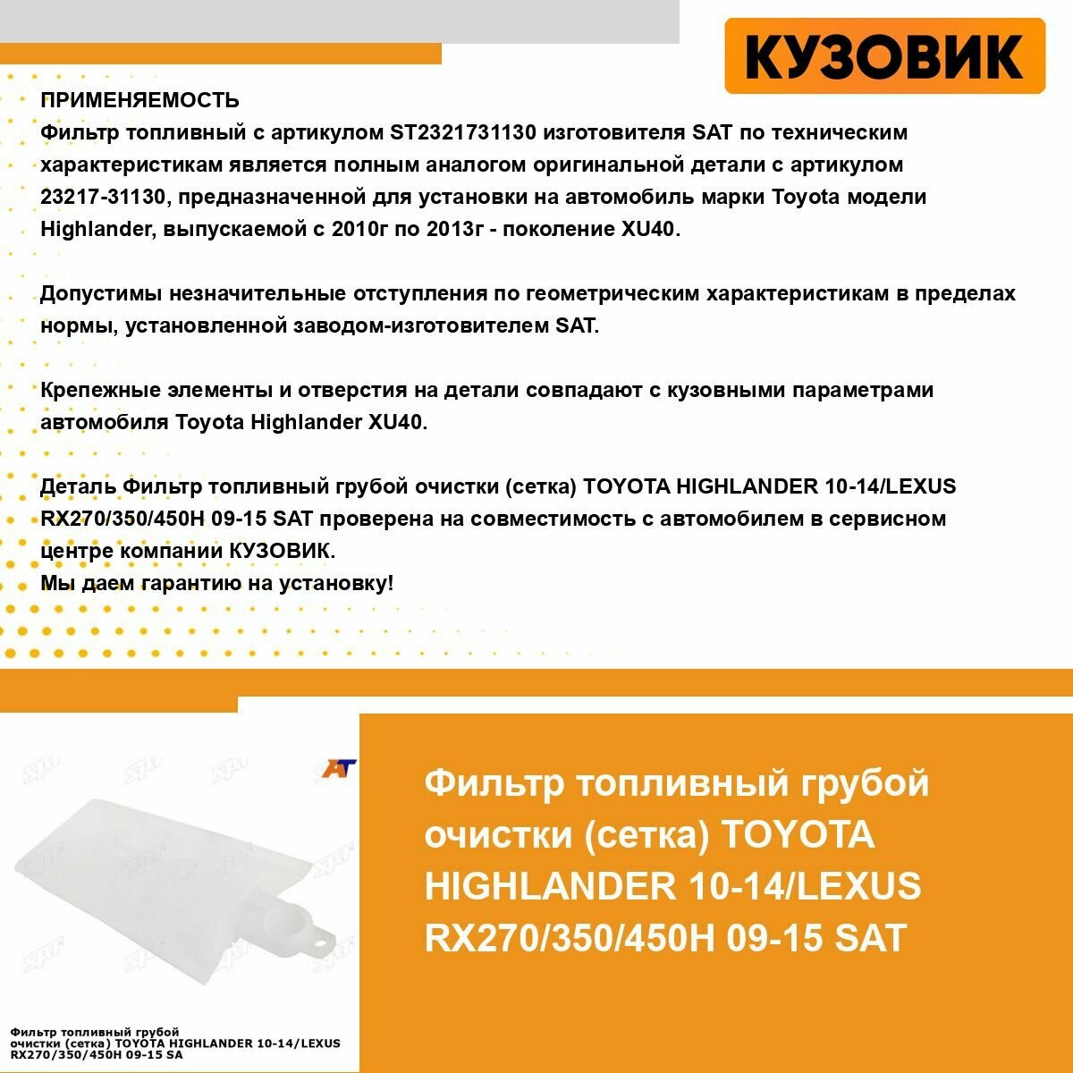 SAT ST-23217-31130 Фильтр топливный грубой очистки (сетка) TOYOTA HIGHLANDER 10-14/LEXUS RX270/350/450H 09-15
