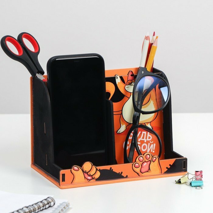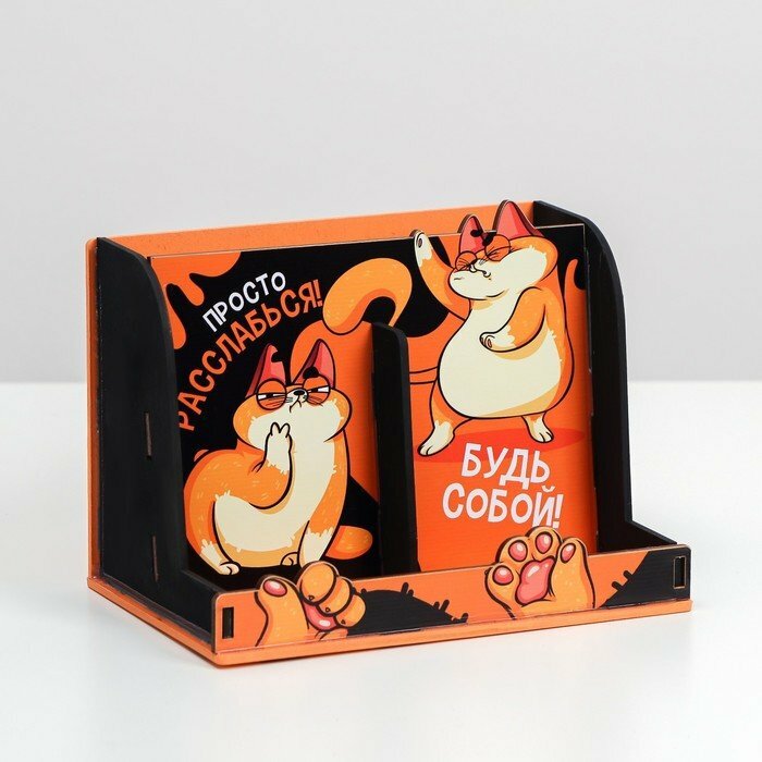 Органайзер настольный с местом под телефон "Рыжий кот" 17,5 х 12,3 х 12 см