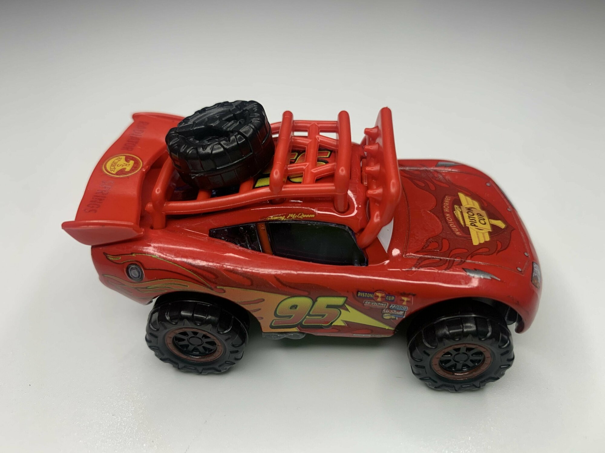 | Плюсы: | Машинка хорошего качества, металлическая, яркая. Внешне соответствует персонажу из мультфильма. При долгих поисках находилось очень много машин несуразных и непонятных. Все цветные элементы нанесены краской. |