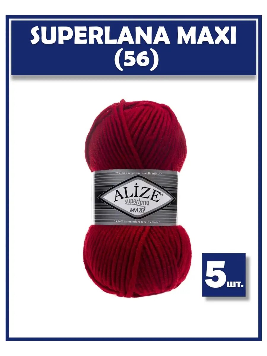 Купить пряжа Суперлана Макси Alize (Superlana Maxi) упаковка 5 мотков 100 гр. 100 м. 25% шерсть 75% акрил цвет 56 красный