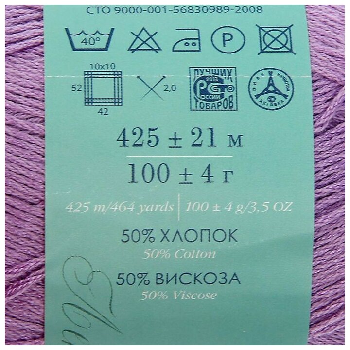 СохранитьПряжа Пехорка - Жемчужная, 50% хлопок, 50% вискоза, 425м/100г, сиреневая, №2-4, 1 шт. интересное:
