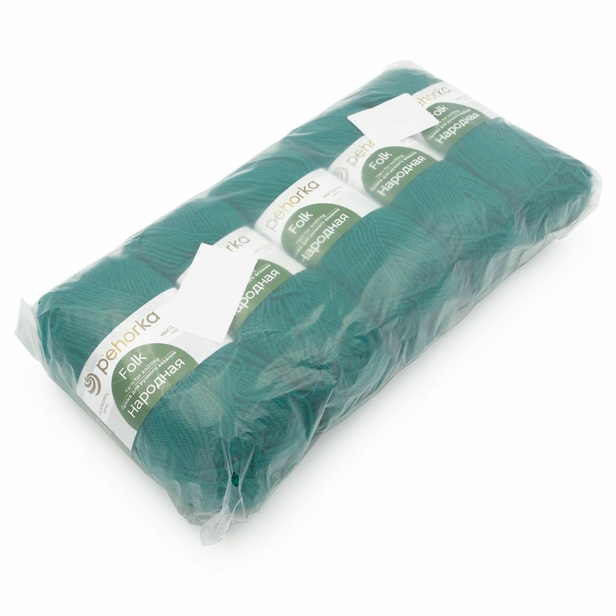 Пряжа для вязания Пехорка 'Народная', 100г, 220м (30% шерсть, 70% акрил высокообъемный) (45-Темная бирюза), 5 мотков