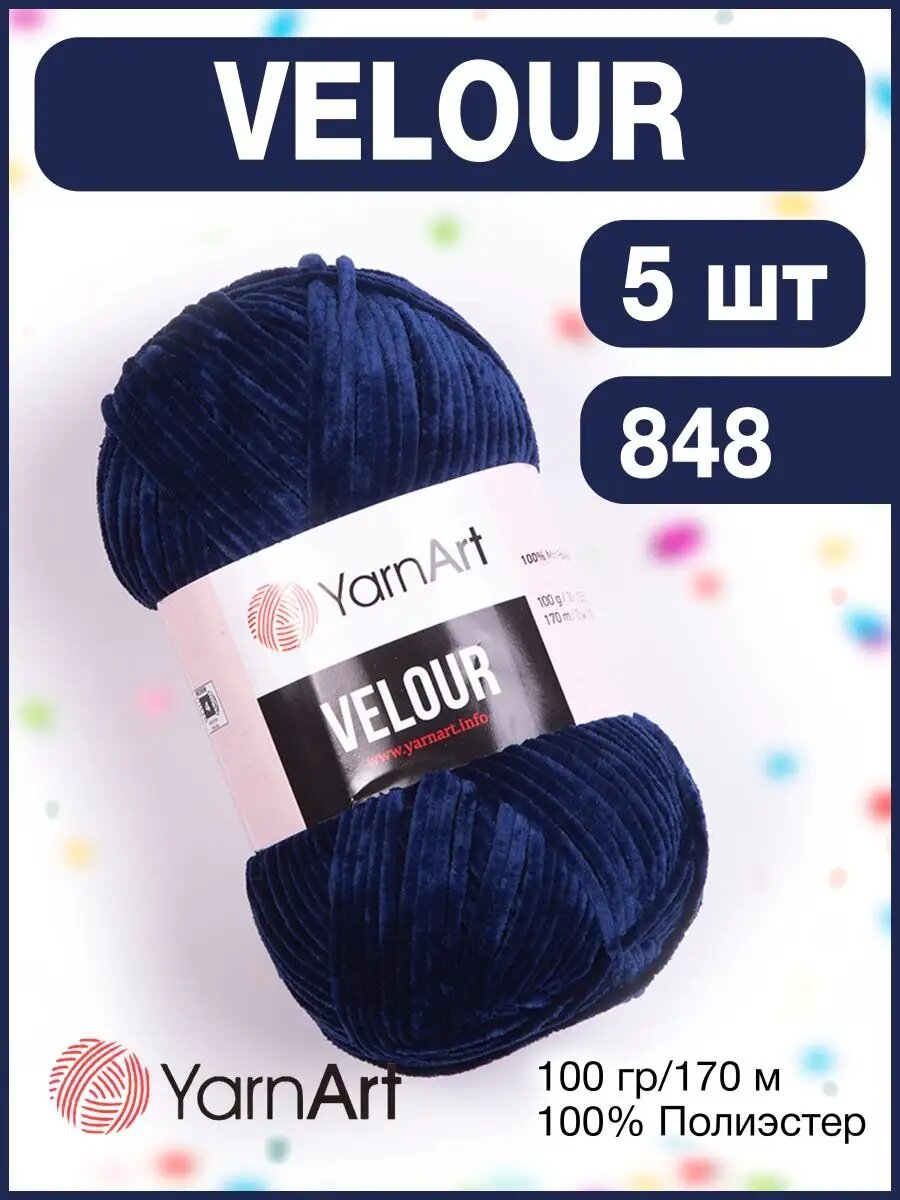 Пряжа YarnArt "Velour", 100 г 170 м, 100% микрополиэстер, 848 темно-синий, 5 шт