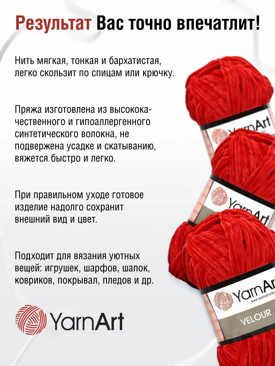 Пряжа для вязания YarnArt 'Velour', 100г, 170м (100% микрополиэстер) (846 красный), 5 мотков