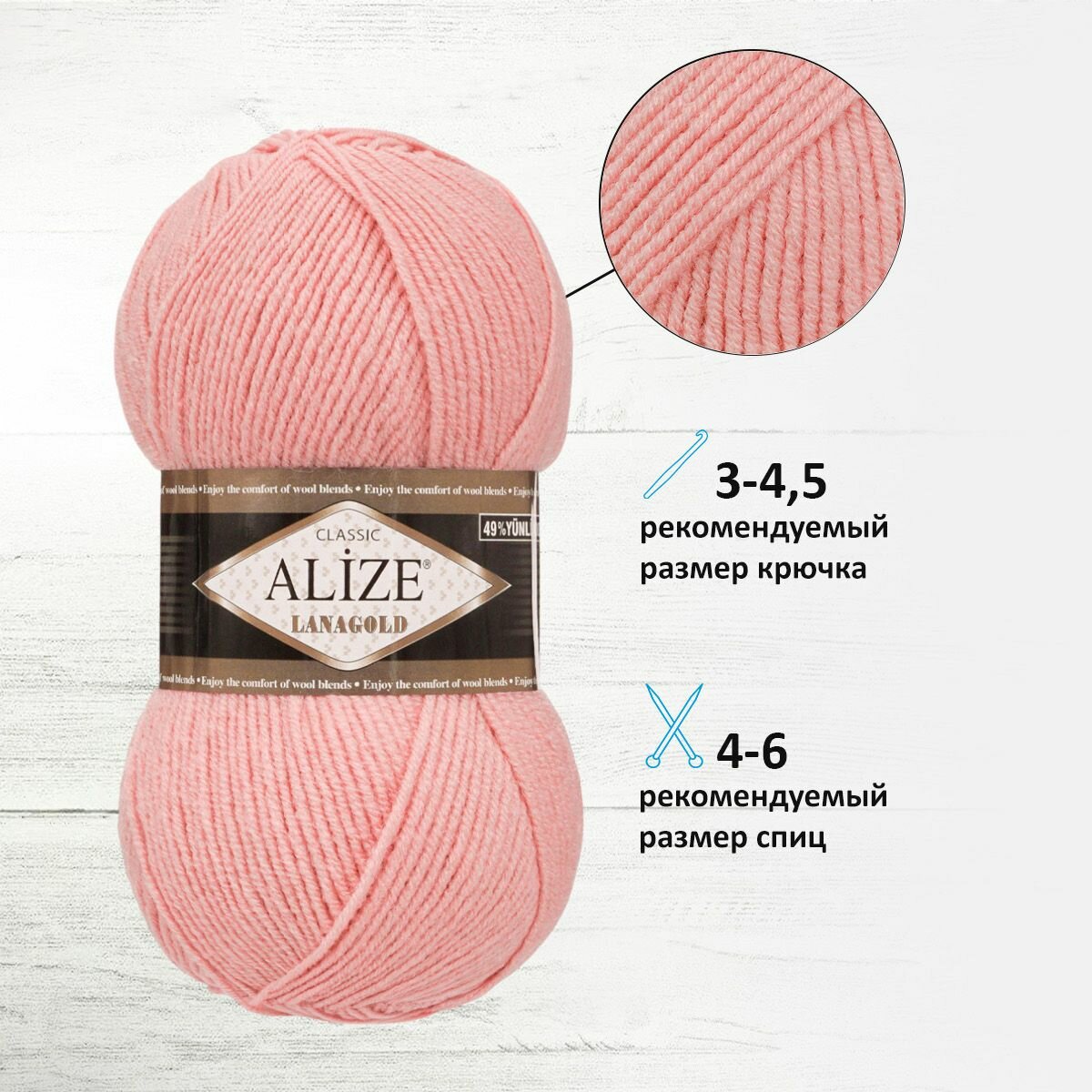 Пряжа Alize Lanagold (Ланаголд) - 1 моток Цвет: 161 пудра 49% шерсть, 51% акрил 100г 240м