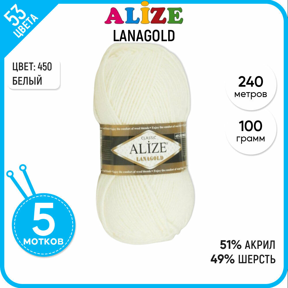 Пряжа Alize Lanagold жемчужный (450), 51%акрил/49%шерсть, 240м, 100г, 5шт