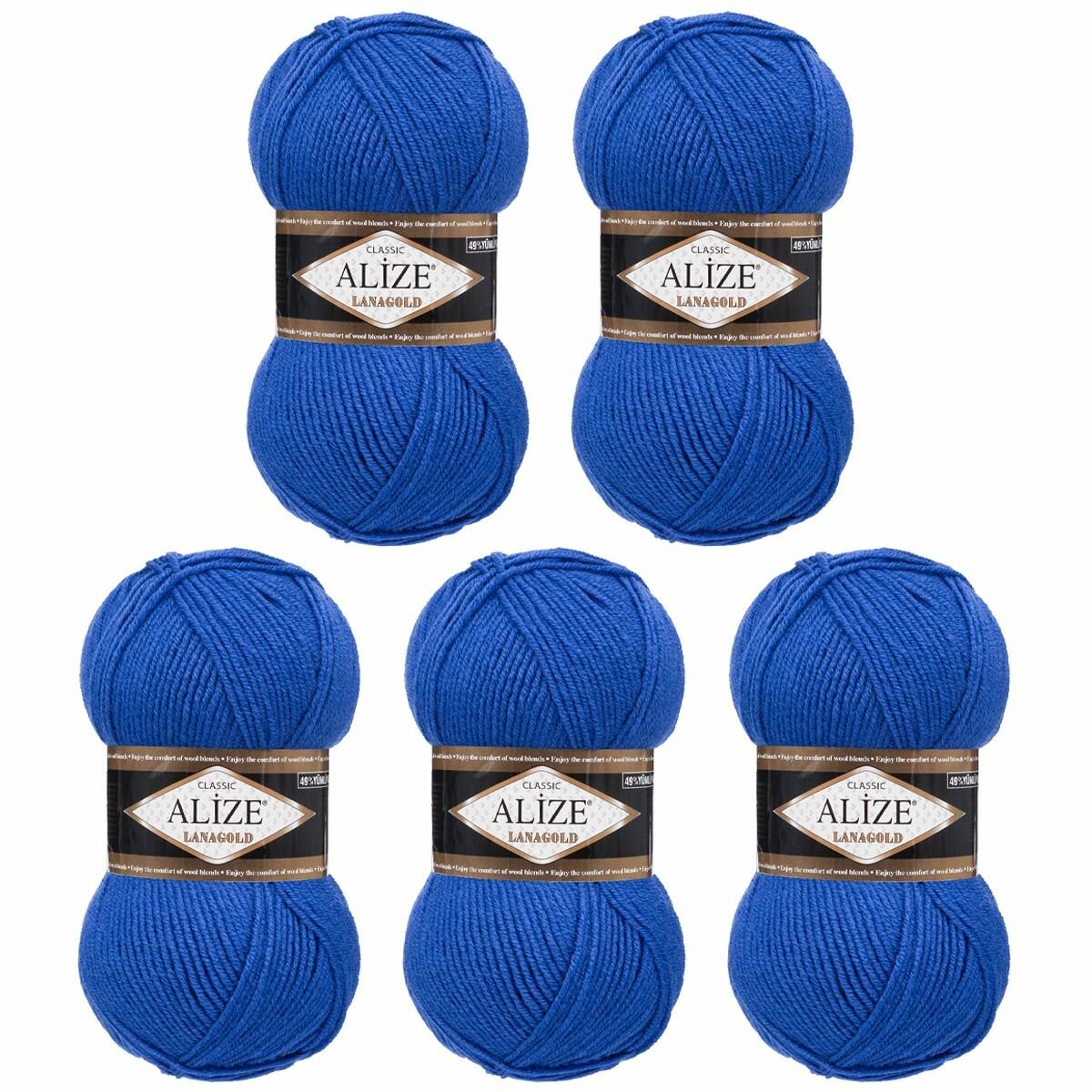 Пряжа Alize Lanagold | Турция | 5шт упаковка | Акрил: 51%, Шерсть: 49%