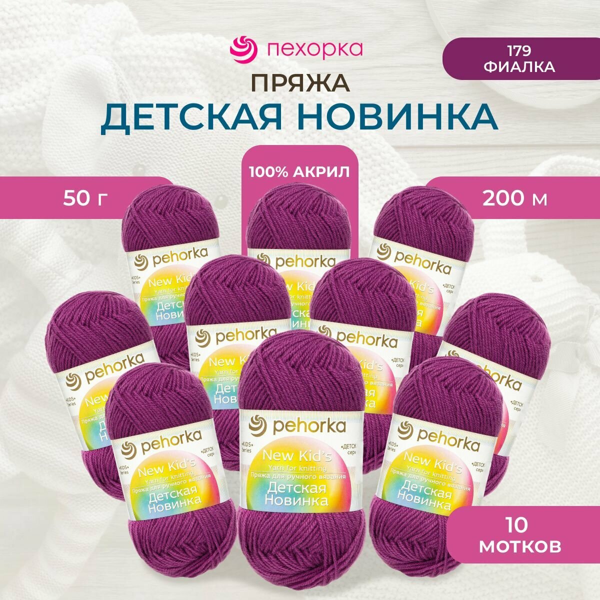 Пряжа для вязания Пехорка "Детская новинка" для детей, 10 шт, Фиалка №179