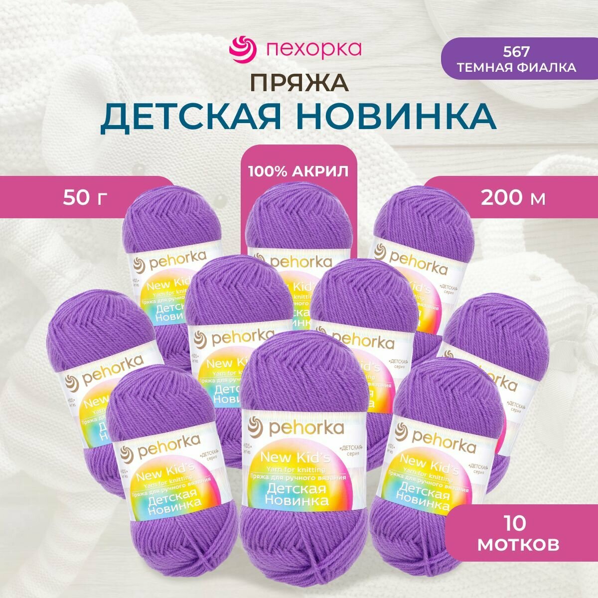 Купить Пряжа для вязания Пехорка 'Детская новинка' 50г, 200м (100% акрил) (567 темная фиалка), 10 мотков