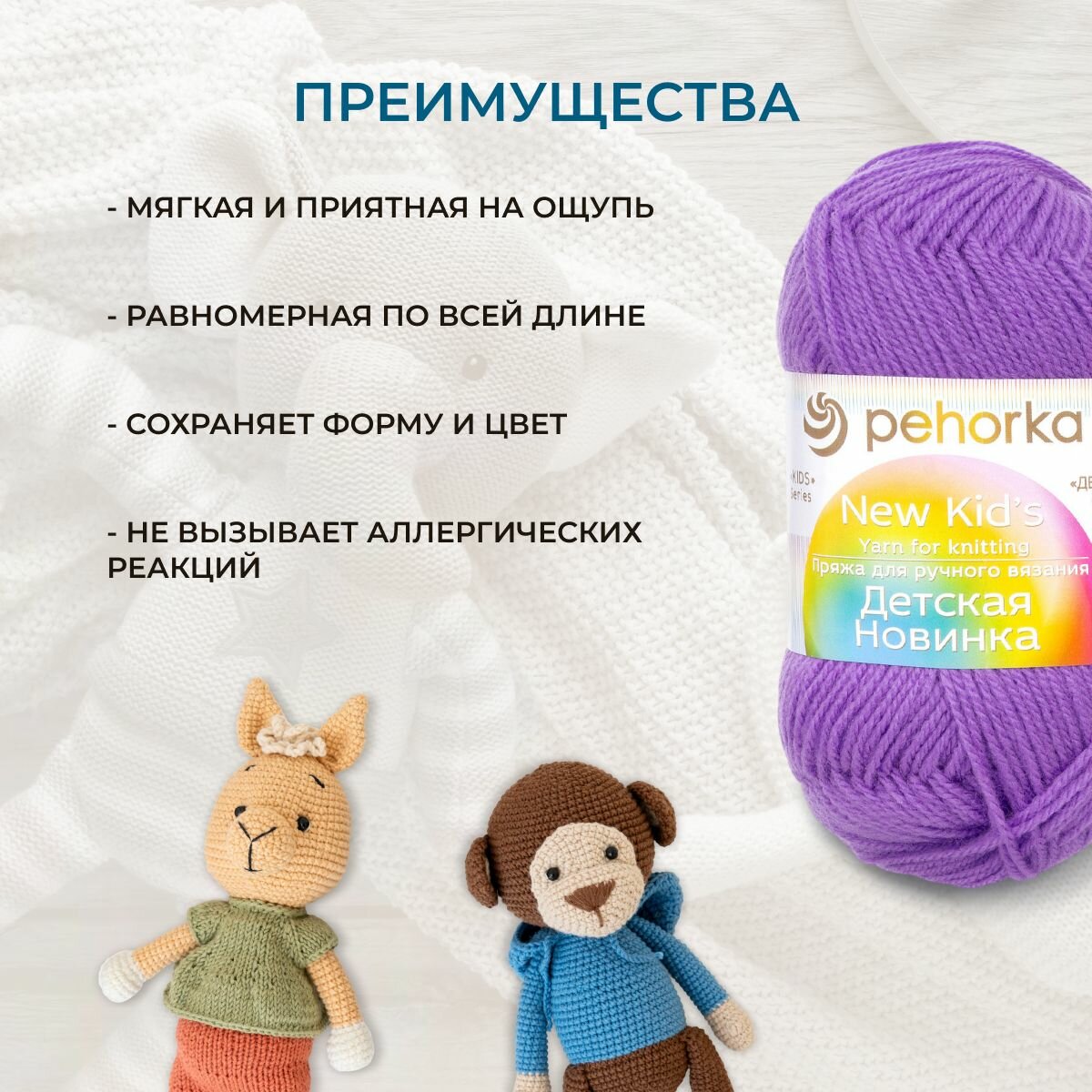 Пряжа для вязания Пехорка "Детская новинка" для детей, 10 шт, Фиалка №179