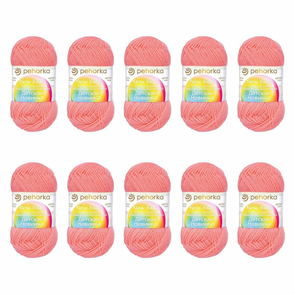 Пряжа Пехорка 'Детская новинка' 50 гр. 200 м. (100%акрил) (351 светлый коралл). В комплекте 10 штук.