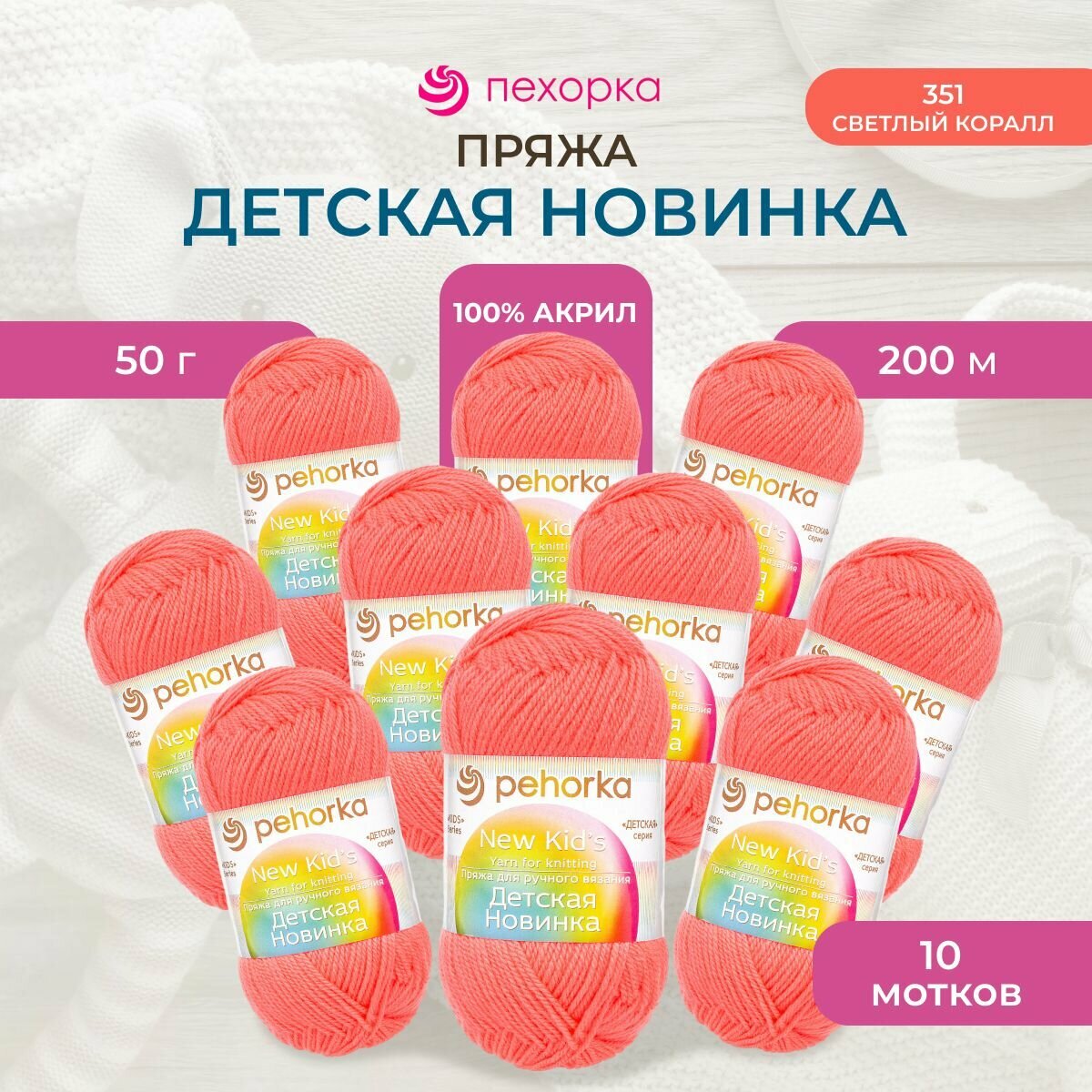 Купить Пряжа для вязания Пехорка 'Детская новинка' 50г, 200м (100% акрил) (351 светлый коралл), 10 мотков