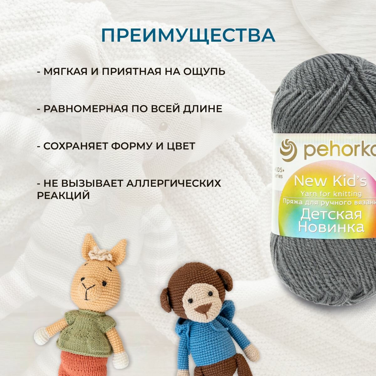 Пряжа 10 шт Пехорка Детская новинка Стальной (174)