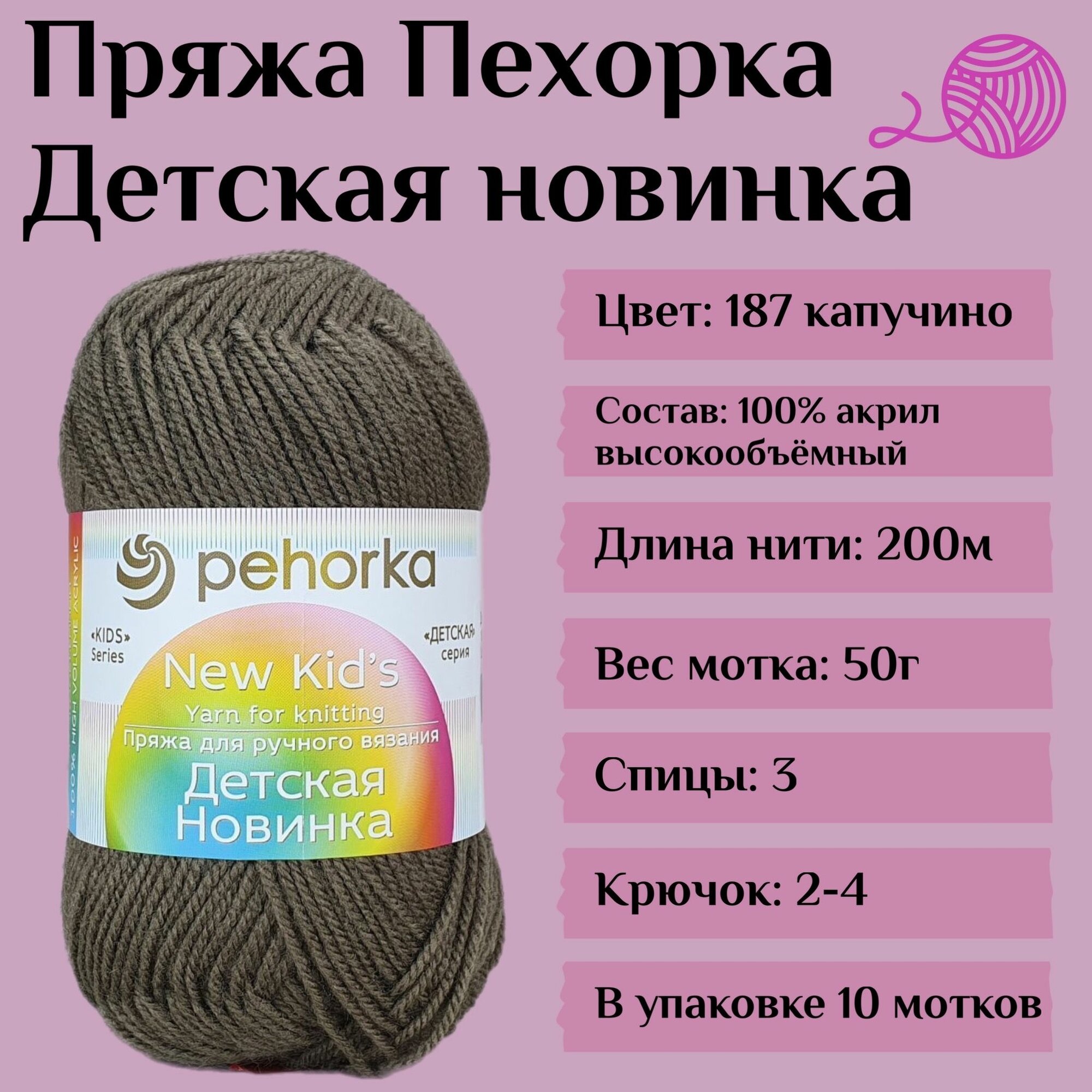 Пряжа Пехорка Детская новинка 10 мотков, цвет капучино 187, состав 100% акрил, вес 50г, длина 200м