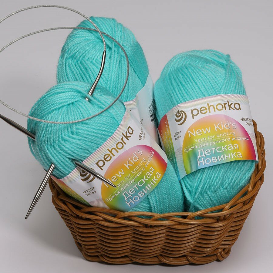 Пряжа Пехорка Детская новинка 5 мотков, цвет лагуна 591, состав 100% акрил, вес 50г, длина 200м