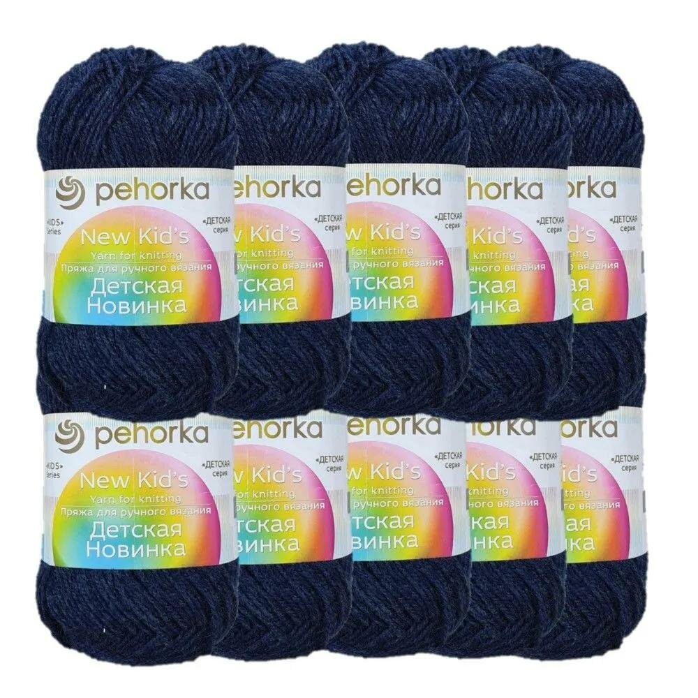 Купить Пряжа Пехорский текстиль "Детская новинка", 100% высокообъемный акрил, 200+-8 м, №255, цвет Джинсовый, 10 шт по 50 г