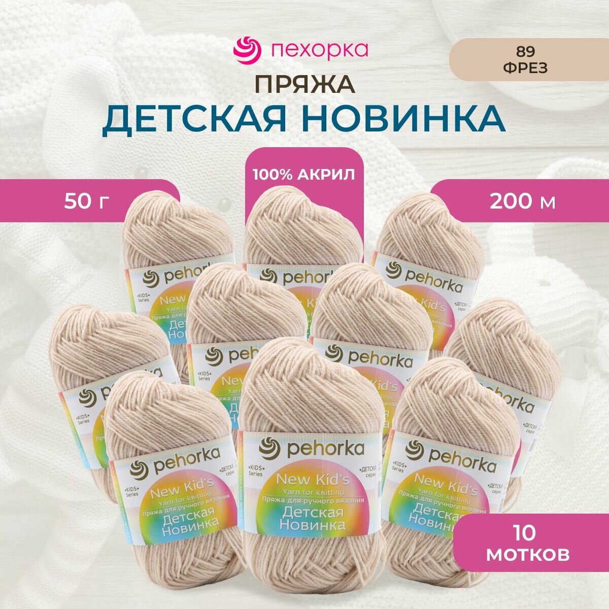 Пряжа Пехорка Детская новинка 10 мотков, цвет капучино 187, состав 100% акрил, вес 50г, длина 200м