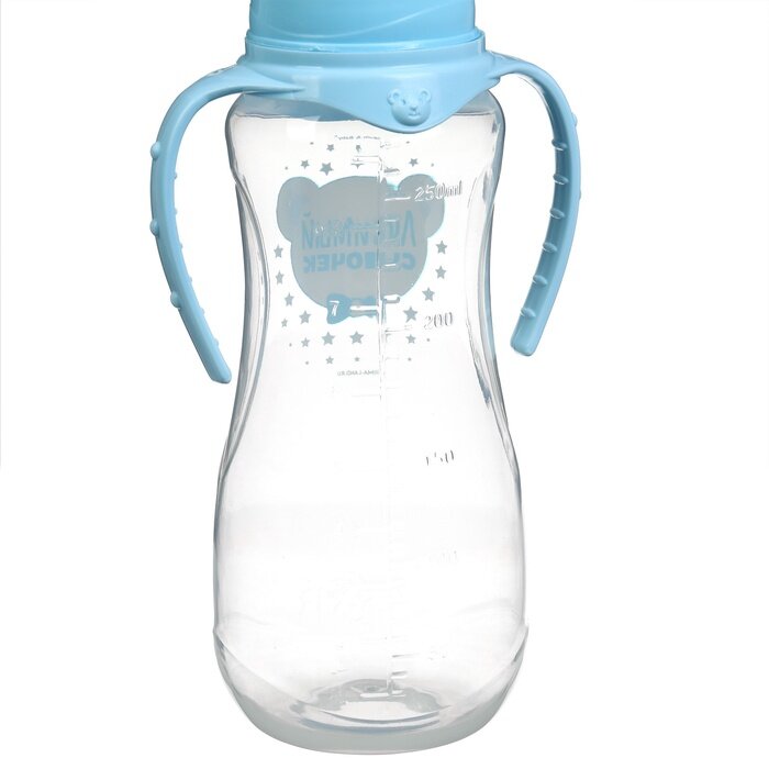 Бутылочка для кормления "Любимый сыночек" детская приталенная, с ручками, 250 мл, от 0 мес., цвет голубой
