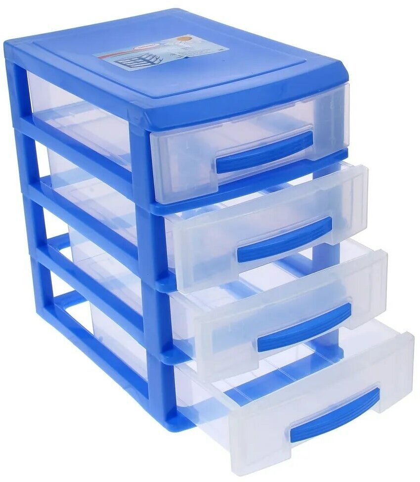 Купить Комод мини 4 секции (темно-голуб/прозрачный) 18*25*27