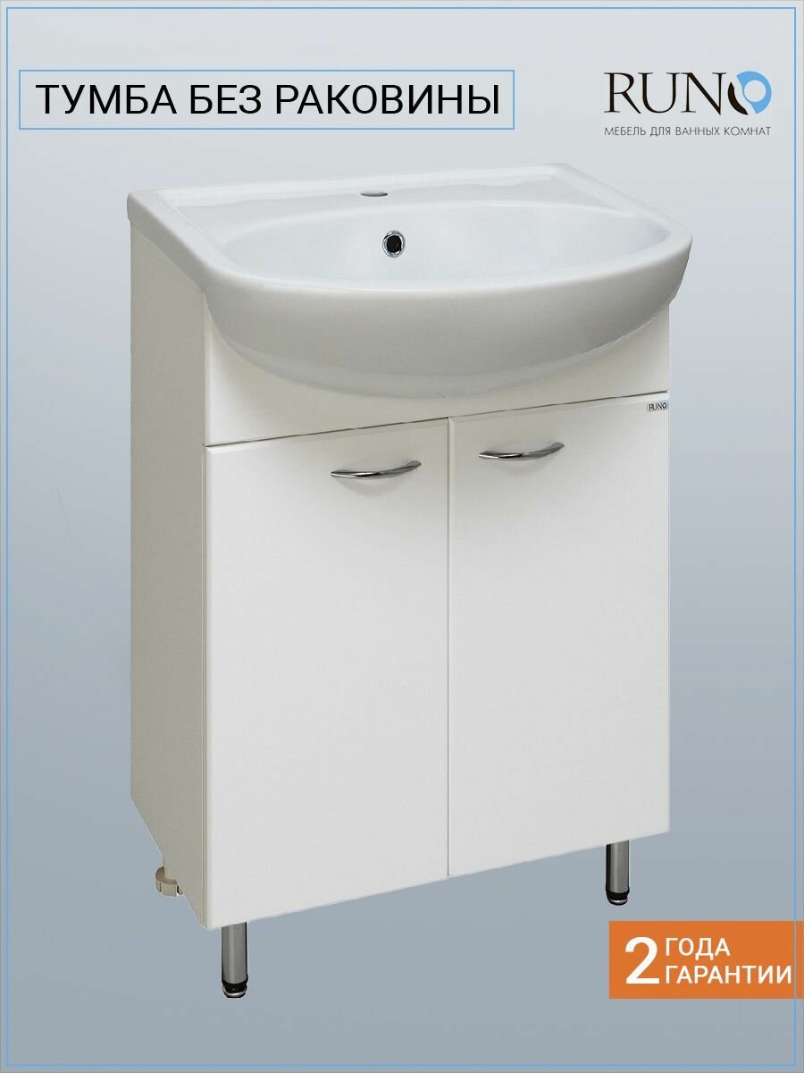Тумба под раковину Runo Эрика 60, напольная, белый, под раковину Элеганс 60