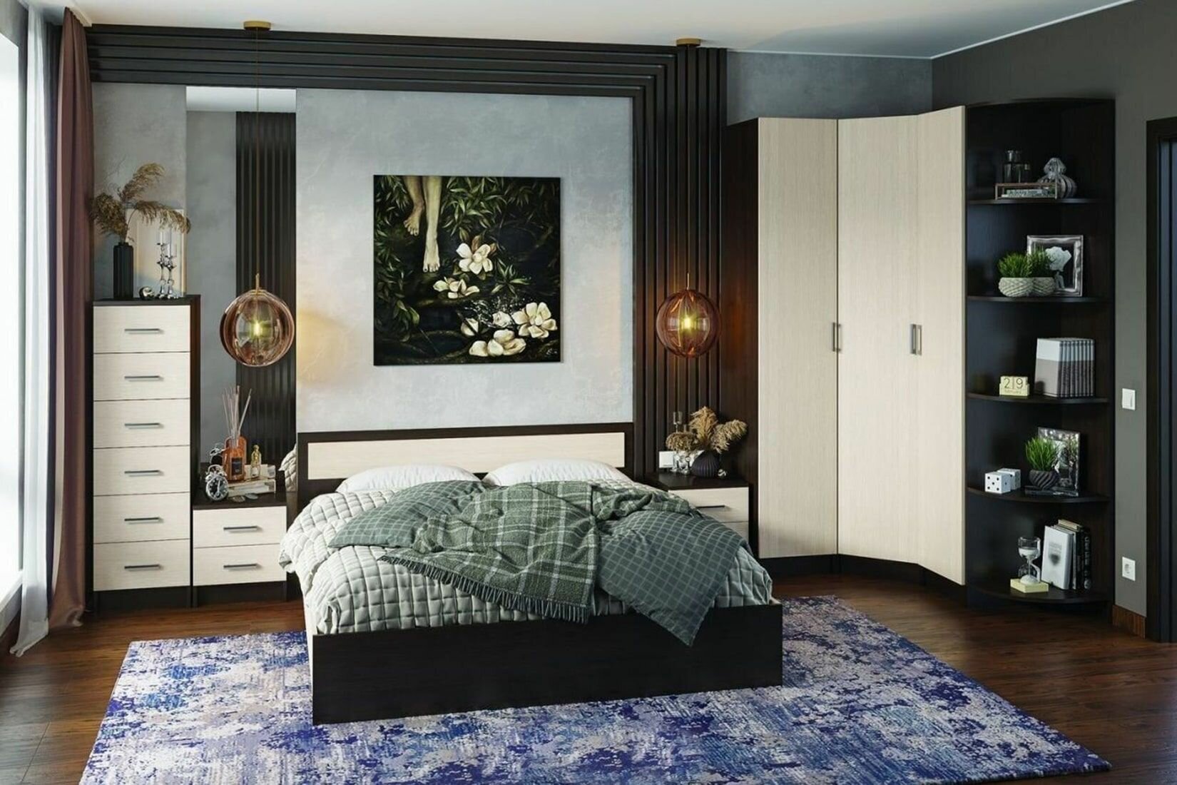 Спальня вегас шкаф угловой (0,85х2,0х0,85) фасад МДФ кофе С молоком/корпус шимо темн