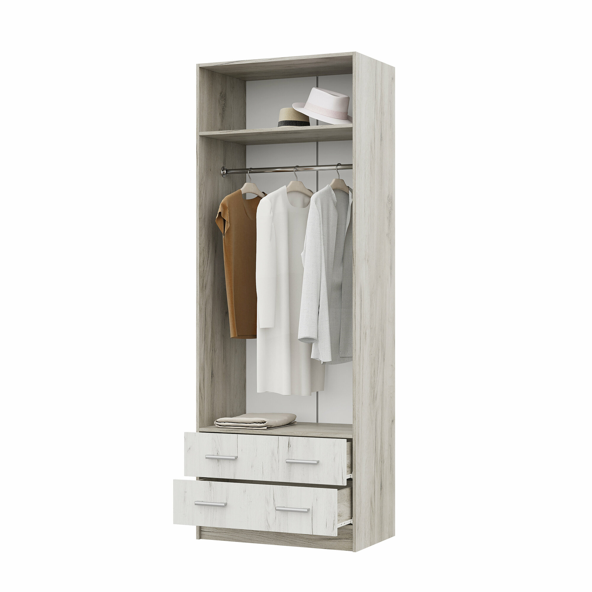 Шкаф распашной двустворчатый ЛДСП, с ящиками, с вешалкой, 80х220х50,5 см дуб крафт серый/дуб крафт белый Гармония ШК 603